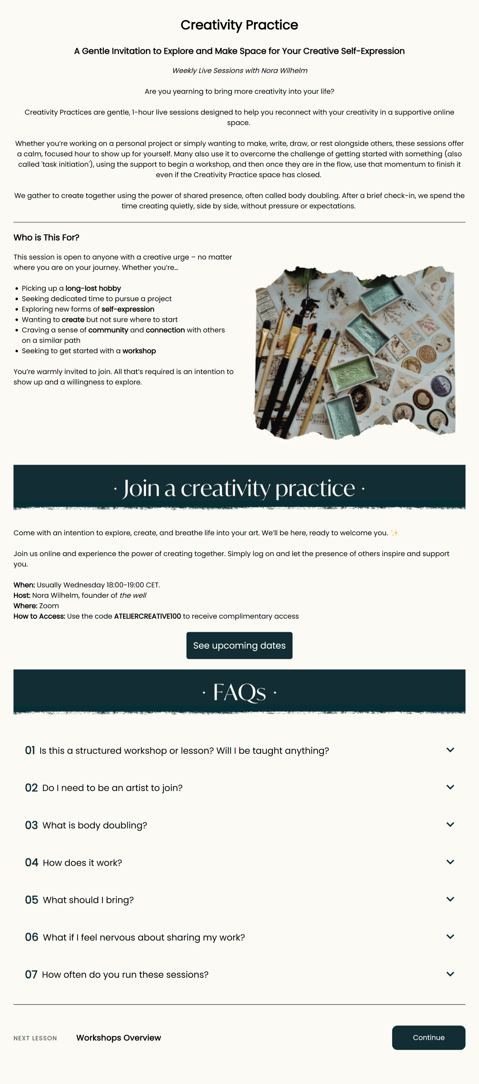✨ Twice-monthly live “Creativity Practices”
