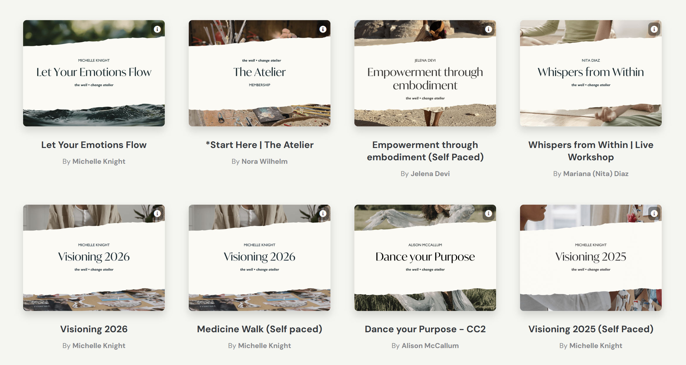 The Atelier follows the rhythm of the year, with natural pauses built in. We rest mid-December to mid-January and again from mid-July to mid-August, honouring cycles of hibernation and renewal. You’ll always have access to all of our self-paced content, so the well never runs dry - even when we collectively slow down. After the intentional pause, our collective rhythm with live offerings will begin soon again.